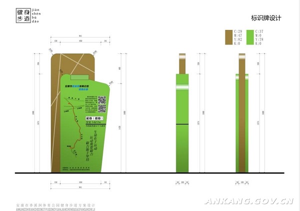 鋪設(shè)環(huán)保透氣型塑膠顆粒步道面層、道路劃線和面層標識、安裝起終點告示牌等。
