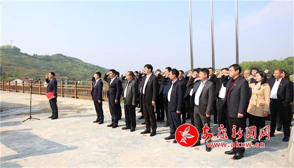 在魚姐村紅色文化旅游廣場,全體人員聆聽了“恒口暴動始末”“一軍月夜借糧”、恒口籍烈士章健等紅色歷史故事。 示范區(qū)(試驗區(qū))黨工委副書記、管委會主任吳大林代表黨工委、管委會向革命烈士敬獻花籃,緬懷革命英烈的豐功偉績。全體人員向烈士默哀鞠躬,深切表達對革命先烈的哀思與敬意,隨后,現場全體黨員一起高舉右拳重溫入黨誓詞,宣誓聲莊嚴而堅定,回蕩在魚姐村山間。