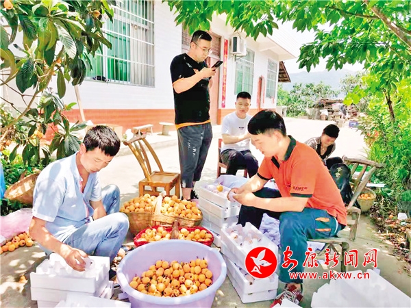 小哥告訴記者,他們公司于2015年開始進(jìn)村攬收枇杷鮮果。每年這段時(shí)間更加派人手入村攬收,自己和同事每天8點(diǎn)就到村入戶,把事先準(zhǔn)備好的水果網(wǎng)套、泡沫保鮮箱、紙箱送到有訂單的村民家中。