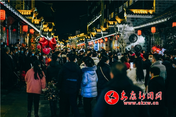 春節(jié)期間,走進(jìn)國家旅游休閑街區(qū)秦巴老街,青磚黛瓦、翹角飛檐,晚上的秦巴老街人山人海,熱鬧非凡。十幾名漢子伴著鑼鼓的節(jié)奏,舉竿來回奔走,兩條火龍?jiān)诳罩邪菏讛[尾,蜿蜒游走,場景十分壯觀。新春爭看彩蓮船,熱熱鬧鬧過大年,彩蓮女一只手拿手帕、一只手撫船,船頭的艄公撐蒿,丑角手握扇子隨船而行,配著鑼鼓的節(jié)奏舞動,好不熱鬧。