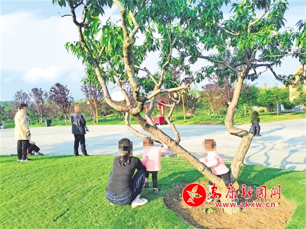 “五一”期間,在高新區(qū)桃花源景區(qū),個別游客帶領小孩未按照相關(guān)規(guī)定文明規(guī)范游玩,小孩攀爬樹木,很是危險。(陳榮斌 攝)