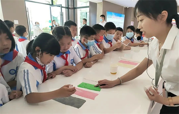 在這里可以體驗(yàn)的活動(dòng)有:一蠶繭手工DIY,孩子們可以充分發(fā)揮自己的想象自己創(chuàng)作;二是剝繭抽絲課堂,孩子們可以親手體驗(yàn)繅絲的神奇,將一根根蠶絲擰成一股繩感受古人的聰明智慧;三是微觀世界課堂,讓孩子們學(xué)習(xí)顯微鏡的構(gòu)造與使用,體驗(yàn)微觀世界的神奇,親自動(dòng)手制作桑葉標(biāo)本,觀察并記錄了顯微鏡下桑葉的形態(tài)特征,最后還可以近距離觀察蠶寶寶,沉浸式體驗(yàn)蠶桑教育文化。
