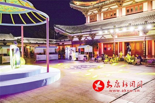 在安瀾樓南側,刻有金州八景的燈籠高高懸掛,穿上漢服,提著燈籠,走向瀾上燈會,感受花燈如晝。移步廊道,徜徉安瀾夜市,感受煥然一新的公園氛圍、琳瑯滿目的文創(chuàng)精品和目不暇接的特色非遺。