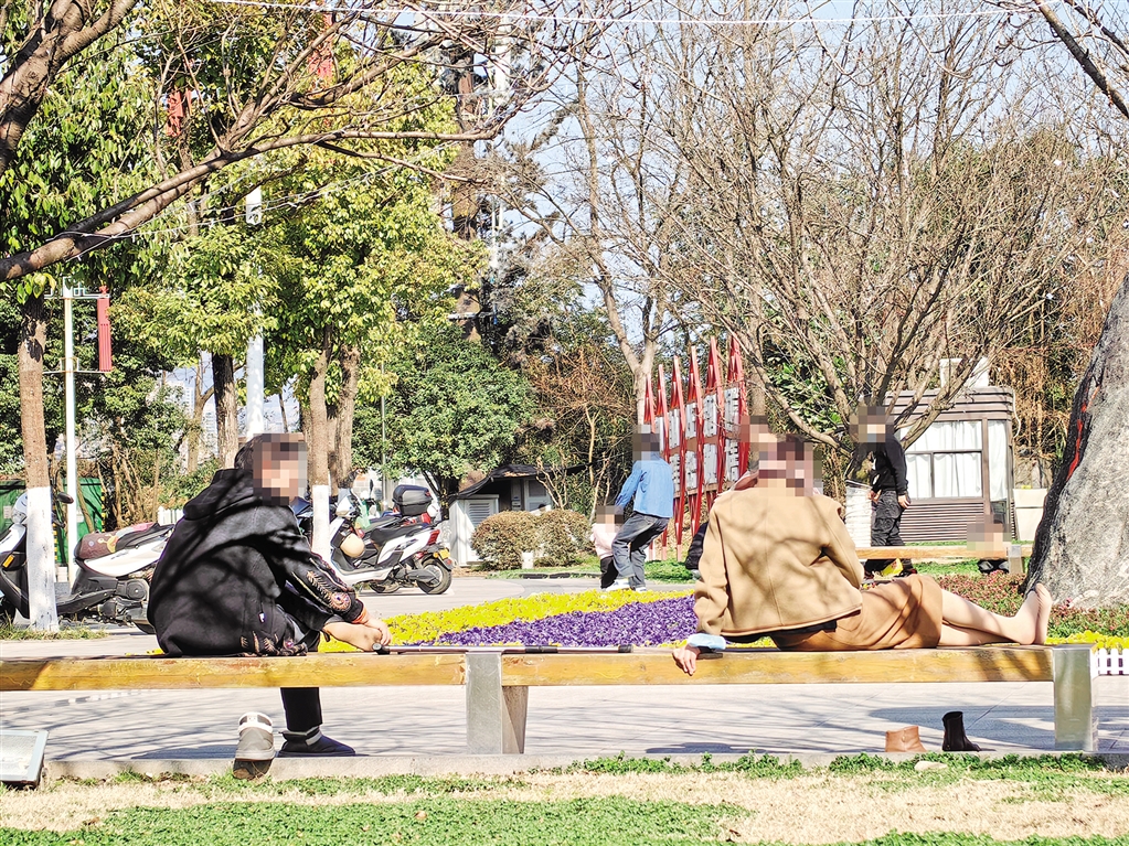 有個(gè)別游客日前在安康博物館廣場(chǎng)未按文明旅游有關(guān)規(guī)定,脫鞋橫臥在公共座位上,影響公共文明。 鄭時(shí)根 攝?