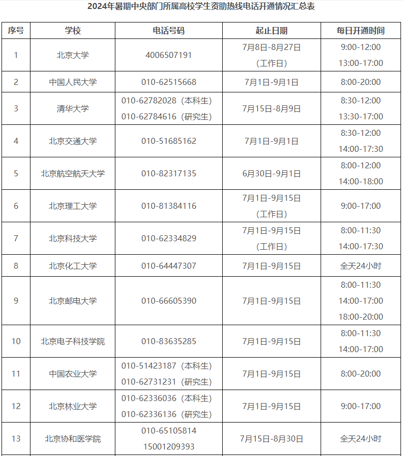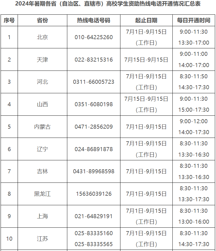 2024年暑期教育部高校學(xué)生資助熱線電話7月1日開(kāi)通