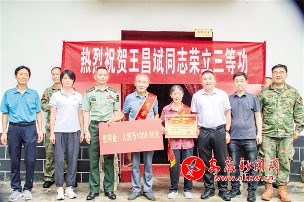 王昌斌在年度戰(zhàn)備訓練中,因表現(xiàn)突出,榮立個人三等功。據(jù)了解這是他第六次榮立個人三等功,送喜報現(xiàn)場軍地領導當場宣讀立功喜報,并為其父母披綬帶、戴紅花,向他們表達崇高的敬意和衷心的祝福。年邁的父母無比激動地接過了滿載榮譽的喜報,擺放在客廳最顯眼的位置,臉上洋溢著喜悅和自豪。隨后與王昌斌父母圍坐在一起,詳細了解他們的身體狀況和生活情況,同時也感謝他們?yōu)樽鎳?、為部隊培養(yǎng)了優(yōu)秀人才,為家鄉(xiāng)贏得榮譽,為祖國的國防事業(yè)貢獻突出力量。并囑咐鎮(zhèn)村干部和相關部門,要給予現(xiàn)役軍人家庭更多的關懷和照顧,及時幫助他們解決遇到的困難和問題,認真做好擁軍優(yōu)屬的各項服務保障工作。