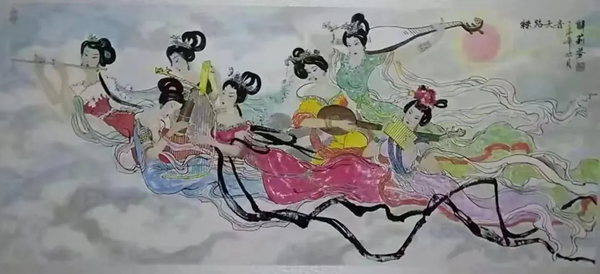 解大姐是陜北人,性格開朗、直率,說話中間或帶出一些濃重的陜北口音。雖說她主業(yè)從于政界,但她微笑的背后卻潛藏著不可掩飾的藝術(shù)天賦,揮發(fā)著令人奪目的藝術(shù)才情。繁雜的政務(wù)工作之余,她創(chuàng)作不輟,堅(jiān)持不懈,居然在多個(gè)藝術(shù)門類收獲頗豐,好評(píng)連連。寫小說,她寫出幾十萬字的長(zhǎng)篇出版發(fā)行;寫劇本,竟拍成了電影予以公映;學(xué)國(guó)畫,亦讓藝術(shù)界的大咖贊口不絕。我雖不才,空有浮名,但深耕藝界多年,對(duì)于其中的好賴還能分出一二。我感到,一個(gè)人的人品和藝品基本一致,解大姐的藝術(shù),是扎根于她熟悉的陜北大地的藝術(shù),是生長(zhǎng)在山峁峁上經(jīng)歷風(fēng)霜雨雪的藝術(shù),就像那陜北倔強(qiáng)的疙瘩柳,散發(fā)著對(duì)土地對(duì)生活的親近和熱情,對(duì)人生價(jià)值實(shí)現(xiàn)的不屈和追求??吹剿膰?guó)畫新作,有陜北剪紙等民間藝術(shù)的滋養(yǎng)和影響,真切而樸實(shí)。她的飛天人物系列,泥古而不落窠臼,使我想到疙瘩柳條隨風(fēng)擺動(dòng)的婀娜風(fēng)姿,溫溫潤(rùn)潤(rùn),令人遐思和向往;她的花鳥畫作,使我想到陜北山野一片蒼茫之間,一朵兩朵盛開的山丹丹花,嬌艷得令人不忍觸手;她的山水畫作,又猶如陜北山原上嫩黃的棗花,洋溢著撲面而來的質(zhì)樸、清新和率真之氣。