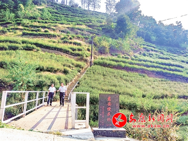 “十月有個(gè)小陽(yáng)春,采點(diǎn)秋茶送親人?!庇锶张?yáng),村民張成明向茶園走去。當(dāng)他在鋼架橋上與從茶山歸來(lái)的張成元相會(huì),談起今年的茶葉收入時(shí),不由得拍著橋頭的扶手感嘆道:“要感謝它呀!”