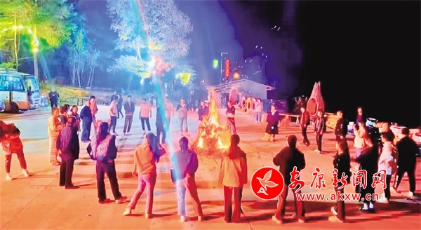 夜幕降臨,篝火熊熊燃起,當(dāng)動(dòng)感的音樂(lè)響起,游客們手拉手圍成圈,繞著篝火載歌載舞,感受著熱烈的秋日浪漫,這一場(chǎng)景也成為此次活動(dòng)的一大亮點(diǎn)。