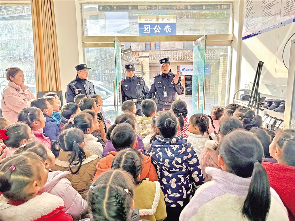 1月8日,紫陽縣公安局高橋派出所舉行“萌娃進(jìn)警營 警心伴童心”主題110宣傳日警營開放活動(dòng),邀請(qǐng)轄區(qū)學(xué)校師生走進(jìn)警營,感受警營文化。陳益謙 攝