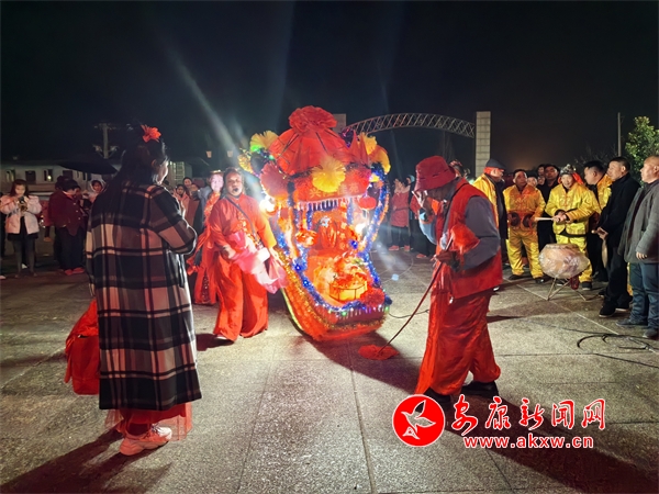 在位于漢陰縣平梁鎮(zhèn)的興隆佳苑社區(qū),春節(jié)期間,小區(qū)里處處洋溢著節(jié)日氛圍。夜幕降臨,社區(qū)廣場響起陣陣鑼鼓聲,?;ù硌菡介_始。只見表演者雙手提船、配合默契,船體隨著“波浪”旋轉(zhuǎn)、顛簸,身穿喜慶艷麗的服裝、頭戴五彩頭飾的表演人員個(gè)個(gè)精神抖擻,一邊前行,一邊唱著漢陰本地的花鼓戲,祈求來年風(fēng)調(diào)雨順、福壽安康。翻飛的彩扇、華麗的彩船,精心編排、詼諧幽默的表演,為社區(qū)群眾呈現(xiàn)了一場精彩的視覺盛宴。