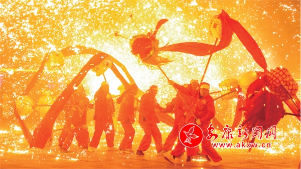 打鐵花點(diǎn)亮漢水之濱。林江 攝