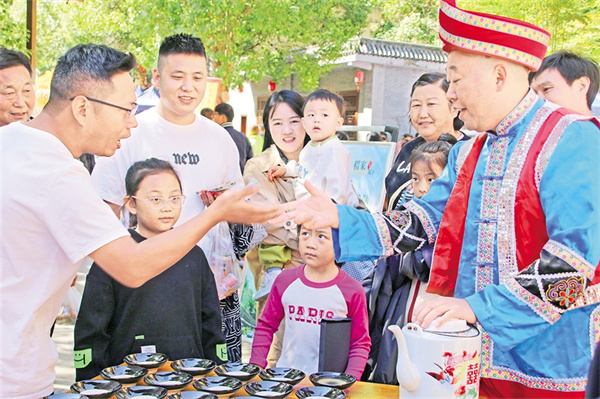 來自臺(tái)灣的游客阿偉第一次體驗(yàn)這“驚心動(dòng)魄”的待客禮,雙手接碗,仰頭飲盡,再用力將碗口朝下摔向青石板。“哐當(dāng)”一聲脆響,瓷片四濺,周圍頓時(shí)響起一片喝彩?!八ね氲臅r(shí)候,心里真痛快!”阿偉笑著說。