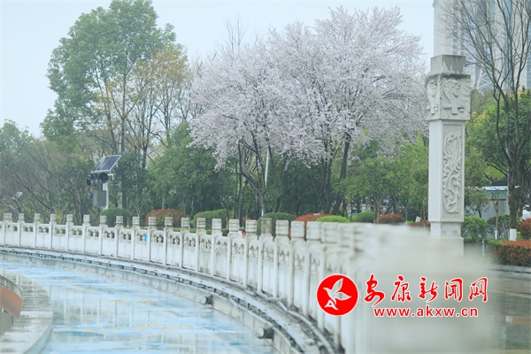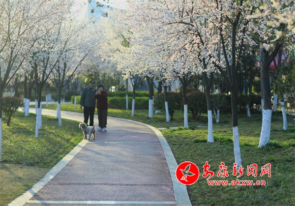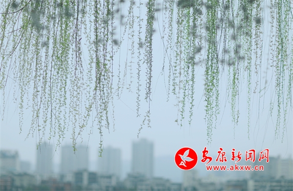 花朵盛開(kāi),柳樹(shù)垂絲,遠(yuǎn)處的城市建筑若隱若現(xiàn)。人們?cè)诮吢?、休憩,享受著春日里的美好時(shí)光。此時(shí)的畫面將現(xiàn)代文明與自然生態(tài)完美融合,讓人感受到城市中一抹特有的清新與寧?kù)o。