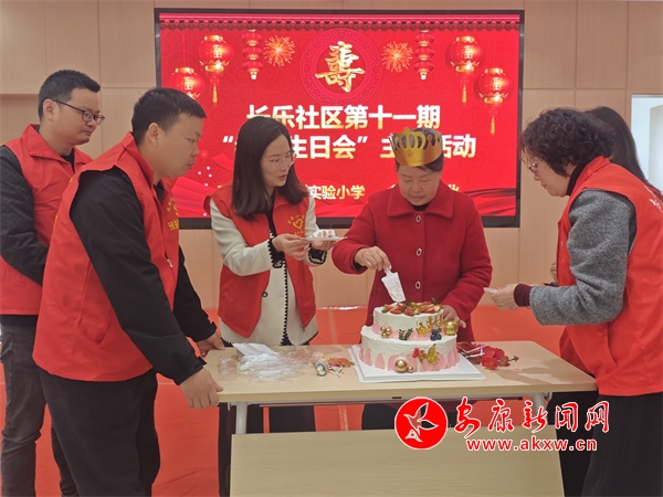 本網(wǎng)訊(通訊員 黃娜 楊環(huán))為弘揚(yáng)孝老愛(ài)親傳統(tǒng)美德,營(yíng)造尊老敬老社區(qū)風(fēng)尚,3月25日,漢陰縣城關(guān)鎮(zhèn)長(zhǎng)樂(lè)社區(qū)聯(lián)合“雙報(bào)到”單位漢陰縣職教中心、實(shí)驗(yàn)小學(xué)舉辦了一場(chǎng)集體生日會(huì)活動(dòng)。30余位70歲以上老人歡聚一堂,在社區(qū)工作人員、志愿者及居民的陪伴下,共度溫馨時(shí)光。