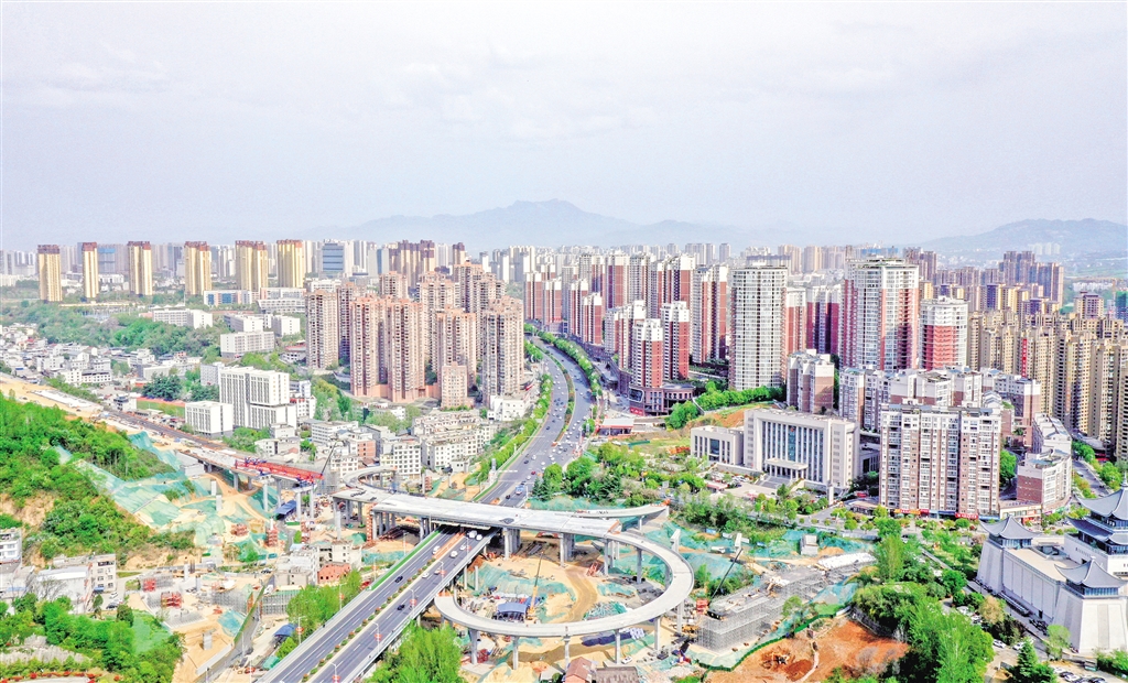 4月9日,航拍鏡頭下的七里溝立交橋項目。 周亭松 攝