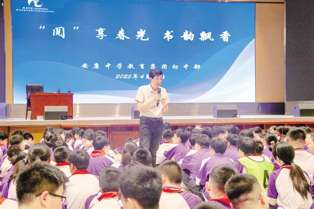 本網(wǎng)訊(記者 郭颯 實習(xí)記者 趙德莎)4月21日,著名作家李春平應(yīng)邀來到安康中學(xué)教育集團(tuán)初中部,為師生帶來一場主題為“閱讀與寫作”的專題講座。