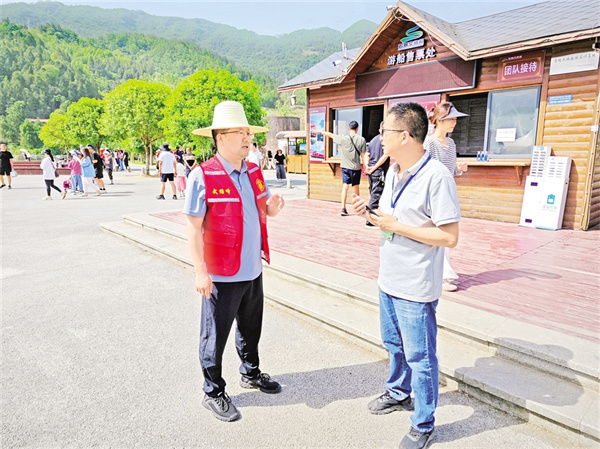 游客需要什么,黨員就做什么!今年“五一”期間,全鎮(zhèn)設(shè)立4個固定服務(wù)崗、30個流動服務(wù)點(diǎn),配備2支摩托巡邏隊(duì)和200名志愿者,形成“點(diǎn)線面”結(jié)合的服務(wù)網(wǎng)絡(luò)。同時運(yùn)用“智慧監(jiān)管云平臺”,整合無人機(jī)巡查、AI人流監(jiān)測等技術(shù)手段,實(shí)現(xiàn)景區(qū)客流精準(zhǔn)調(diào)控,贏得了廣大游客的爭相稱贊。