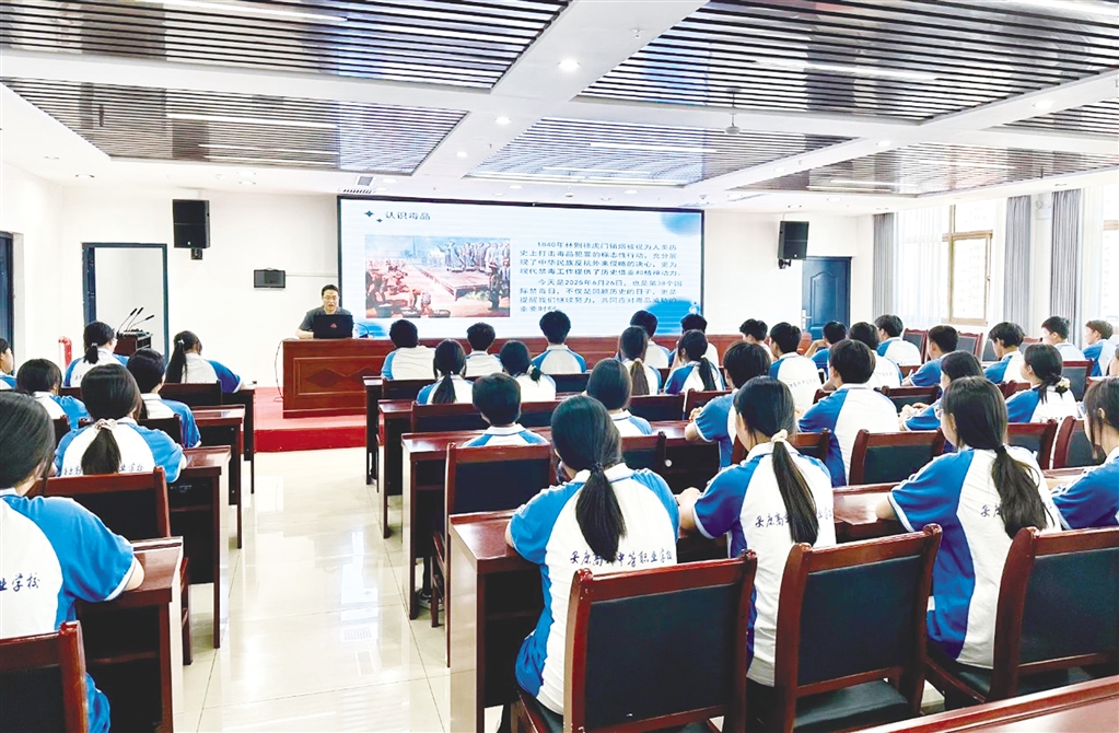 在禁毒宣講環(huán)節(jié),法官通過圖文并茂的方式展示了常見毒品的種類、特性和危害,指導(dǎo)學(xué)生提高辨別能力,增強(qiáng)自我保護(hù)意識(shí),并告誡學(xué)生們要時(shí)刻保持警惕,堅(jiān)決抵制毒品侵害。