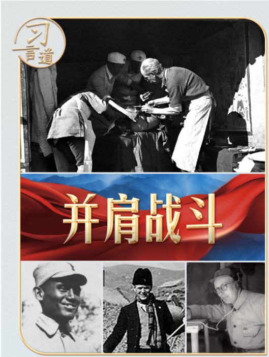 印度醫(yī)生柯棣華、法國醫(yī)生貝熙葉、德國人約翰·拉貝、丹麥人辛德貝格、英國人林邁可、國際主義戰(zhàn)士漢斯·希伯、蘇聯(lián)飛行大隊(duì)長庫里申科、美國“飛虎隊(duì)”......他們的事跡,習(xí)近平總書記曾多次動(dòng)情講述??倳涍€在國內(nèi)外重要場合為曾幫助和支持中國抗戰(zhàn)的國際友人頒獎(jiǎng),向他們致敬。