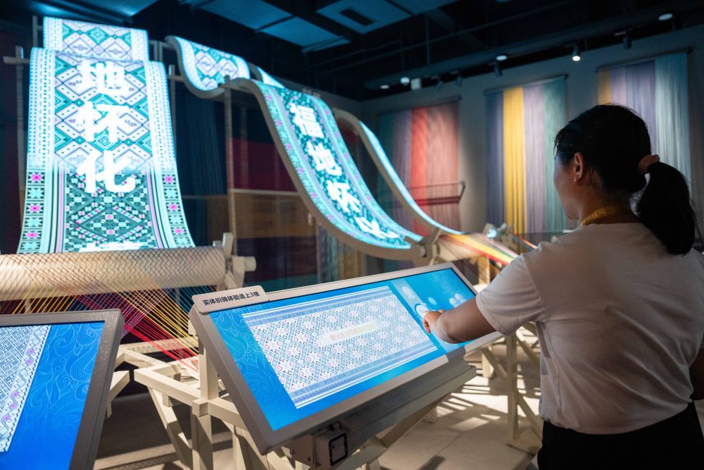 2025年9月16日,游客在湖南省懷化市五溪非遺園體驗(yàn)數(shù)字化織錦。五溪非遺園于2025年5月正式開園,包含非遺廣場、數(shù)字體驗(yàn)空間和研學(xué)工坊三大板塊,運(yùn)用VR、AR、全息投影等技術(shù)打造42個(gè)沉浸式非遺體驗(yàn)項(xiàng)目。目前,懷化以五溪非遺園為抓手,推出非遺主題研學(xué)項(xiàng)目、開發(fā)深度互動(dòng)項(xiàng)目,構(gòu)筑特色文化產(chǎn)業(yè)體系,吸引更多人了解、學(xué)習(xí)非遺,讓傳統(tǒng)技藝成為城市發(fā)展的文化動(dòng)力。