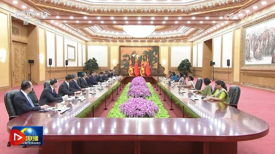 10月14日上午,國(guó)家主席習(xí)近平在北京人民大會(huì)堂會(huì)見(jiàn)來(lái)華出席全球婦女峰會(huì)的斯里蘭卡總理阿馬拉蘇里亞。