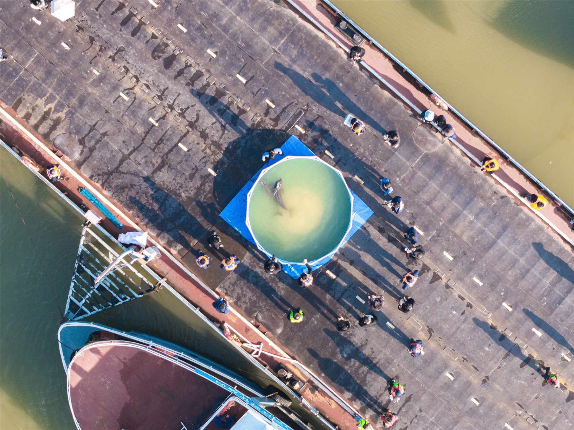 11月14日,在湖北洪湖市長江洪湖段,兩頭經(jīng)過野化訓練的長江江豚被放歸長江干流,中科院水生所研究人員正實時監(jiān)測。這已經(jīng)是我國第二次開展這樣的野化放歸行動。