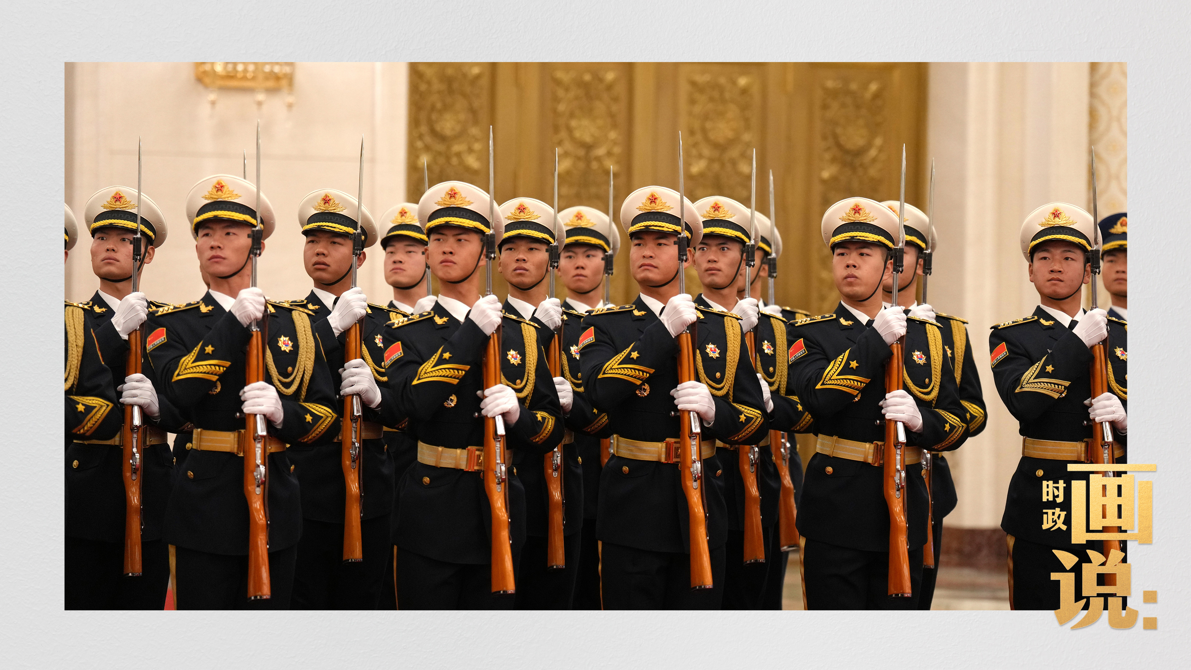 △馬克龍?jiān)诹?xí)近平陪同下檢閱中國(guó)人民解放軍儀仗隊(duì)并觀看分列式