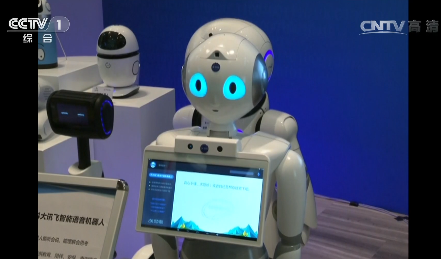 △ 2016年4月26日,習(xí)近平總書記考察中國科技大學(xué)。這是與總書記互動的機(jī)器人“小曼”。(視頻截圖)