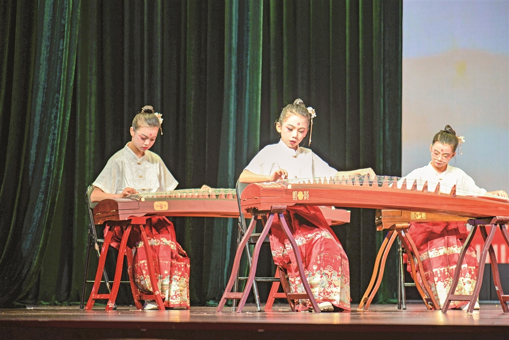 線上課程補足了師資缺口,線下的實踐體驗與成果展示則進一步鞏固了美育成效。該館全年開展版畫、民歌、剪紙等專項培訓(xùn)48場,服務(wù)青少年8000余人次;舉辦“兒童版畫走基層”展覽12場,培訓(xùn)學(xué)生1200余人,24件學(xué)生作品入選全國少兒版畫雙年展;開展“非遺進校園”陜南民歌、漢調(diào)二黃等展演培訓(xùn)30余場,成立非遺社團10個,發(fā)展學(xué)員400余人。在漢調(diào)二黃進校園活動中,安康中學(xué)教育集團初中部的學(xué)生們身著傳統(tǒng)戲服,演繹《太君辭朝》選段,一招一式有板有眼,韻味十足?!盀榱伺藕眠@個節(jié)目,同學(xué)們利用課余時間刻苦訓(xùn)練了3個月?!敝笇?dǎo)老師許世蓮說,通過學(xué)習(xí)戲曲,學(xué)生們不僅提升了藝術(shù)素養(yǎng),更領(lǐng)悟到了其中蘊含的家國情懷和民族精神。
