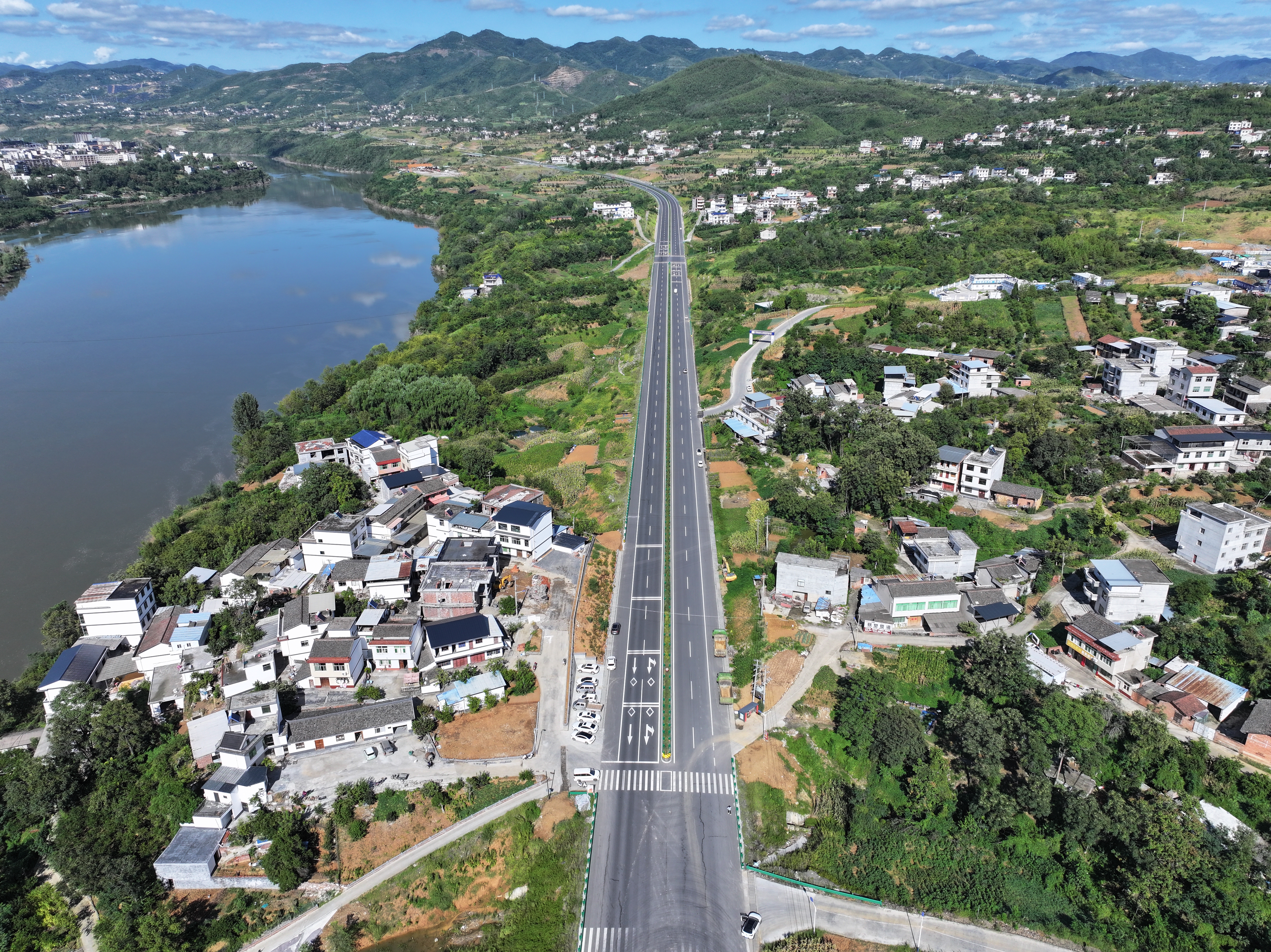 在漢濱區(qū)張灘鎮(zhèn)211國道“千萬工程”示范線上,張石大道貫通南北,成為串起鄉(xiāng)村風景的美麗廊道。 李靖 攝