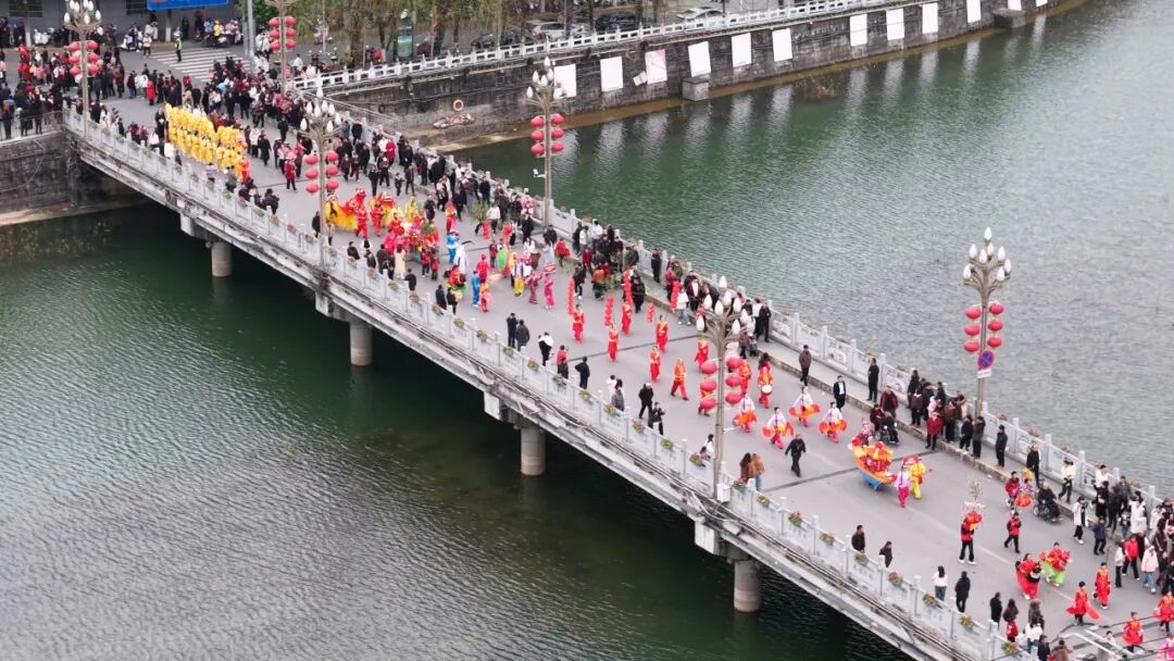 觀眾熊苗苗:很遠(yuǎn)就被鑼鼓喧天的場(chǎng)景給吸引了,看到有很多隊(duì)伍在演出,有年紀(jì)大的叔叔阿姨,也有很小的弟弟妹妹。這個(gè)場(chǎng)景真的非常熱鬧,讓人看著很開(kāi)心,年味十足。