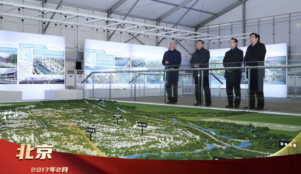 2017年2月24日,習(xí)近平總書(shū)記在北京城市副中心行政辦公區(qū)建設(shè)現(xiàn)場(chǎng)指揮部察看規(guī)劃沙盤(pán),了解副中心建設(shè)理念、目標(biāo)定位、文化保護(hù)等情況。創(chuàng)新為要、“瓣瓣同心”,總書(shū)記的戰(zhàn)略擘畫(huà),引領(lǐng)京津冀協(xié)同發(fā)展走深走實(shí)。