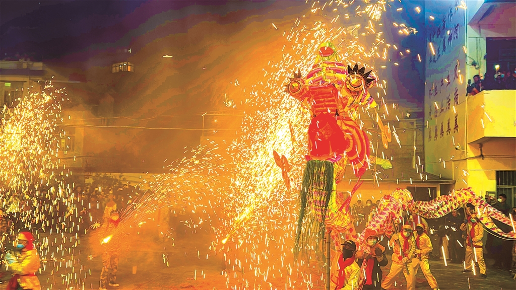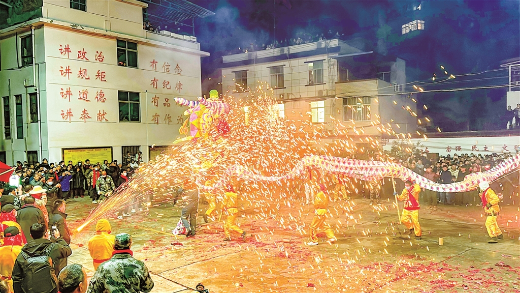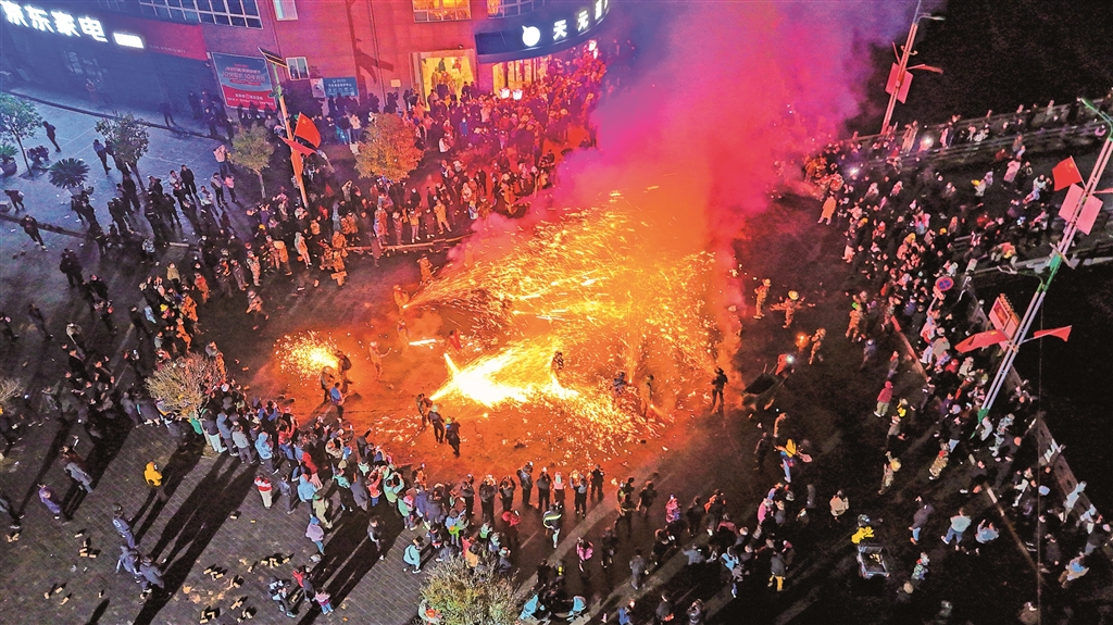 圖一:3月1日,旬陽(yáng)市蜀河古鎮(zhèn)舉行“火獅子”民俗活動(dòng)。烏蒙 羅瑞琦 攝