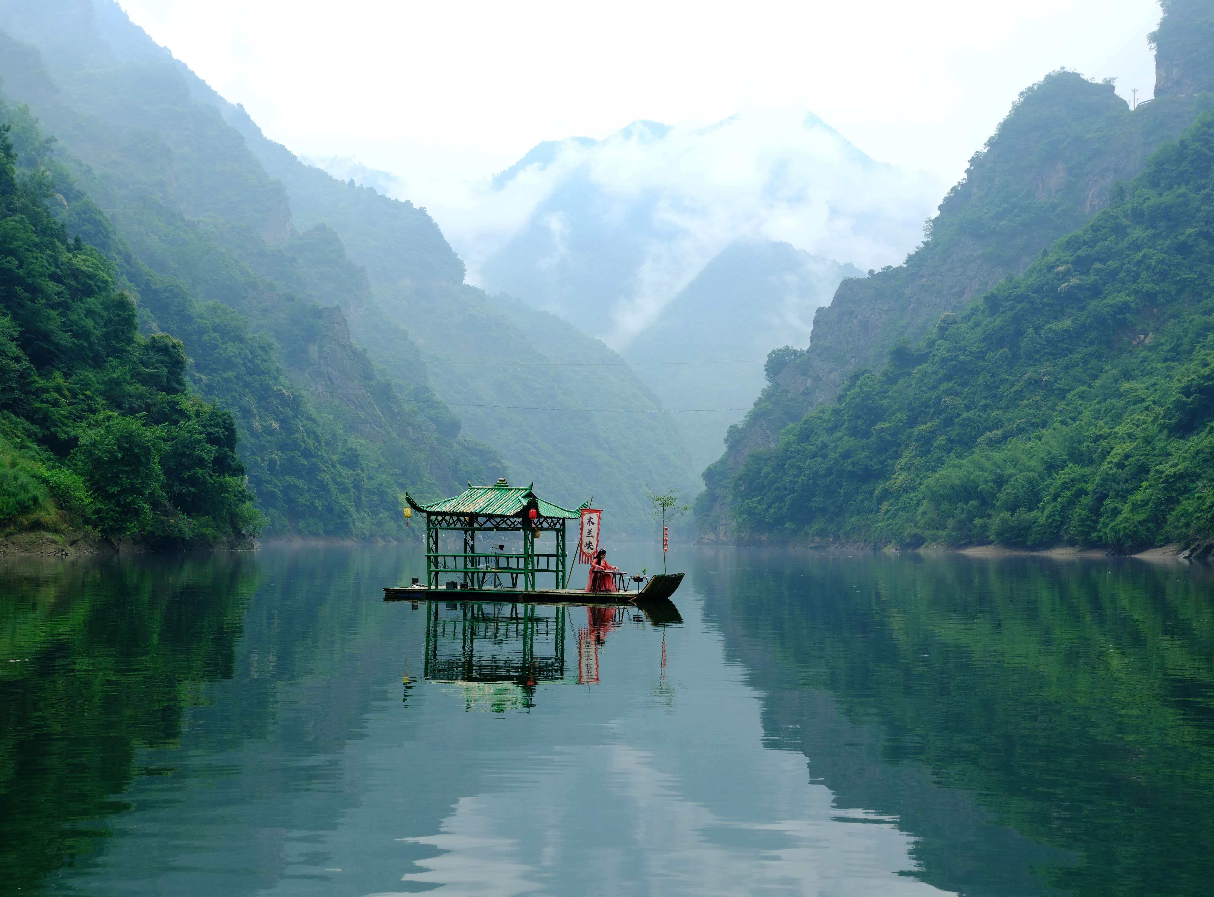 2012年夏天,我陪客人走進(jìn)毛壩鎮(zhèn)。朋友做向?qū)В@才第一次見識(shí)了木蘭峽,紫陽的深山里,原來藏著這般景致。峽水幽幽,綠得深沉,不起一絲波瀾。小船行在水上,像是劃破了一匹綠綢子;又像是根本沒動(dòng),只靜靜地浮著,浮在一整個(gè)下午的光陰里。兩岸奇峰默然對峙,滿坡蓊蓊郁郁,盡是些叫不出名字的樹木。偶爾有野山羊從崖邊下來,到峽邊低頭喝水,見了人也不是很怕。峽的盡頭,一段古纖道斜斜地臥在峽邊,石頭上還留著當(dāng)年的鑿痕。不遠(yuǎn)處立著一塊清代道光年間的石碑,上面的字跡雖已模糊,卻仿佛還在那里,低聲訴說著從前的熱鬧。