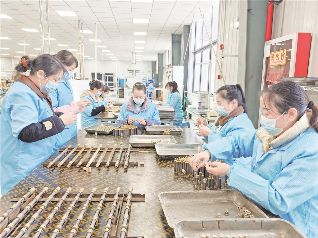 在陜西歐西克電子有限公司生產(chǎn)車間,各條生產(chǎn)線滿負(fù)荷運(yùn)轉(zhuǎn),高壓陶瓷電容器、GPS天線片等產(chǎn)品有序生產(chǎn)。從電子器件成型、燒制、焊接,到絲網(wǎng)印銀、質(zhì)量抽檢,每一道流程都嚴(yán)謹(jǐn)規(guī)范、精益求精,以高標(biāo)準(zhǔn)保障產(chǎn)品質(zhì)量?!皬?fù)工復(fù)產(chǎn)后,企業(yè)將趕制訂單作為核心任務(wù),全力保障訂單交付。”負(fù)責(zé)人高維軍信心滿滿地表示,“2026年企業(yè)將聚焦生產(chǎn)設(shè)備更新與產(chǎn)能提升,加大科技創(chuàng)新和設(shè)備投入,爭(zhēng)取實(shí)現(xiàn)年產(chǎn)值9000萬(wàn)元的目標(biāo),帶動(dòng)更多群眾在家門口就業(yè)增收?!?/p>