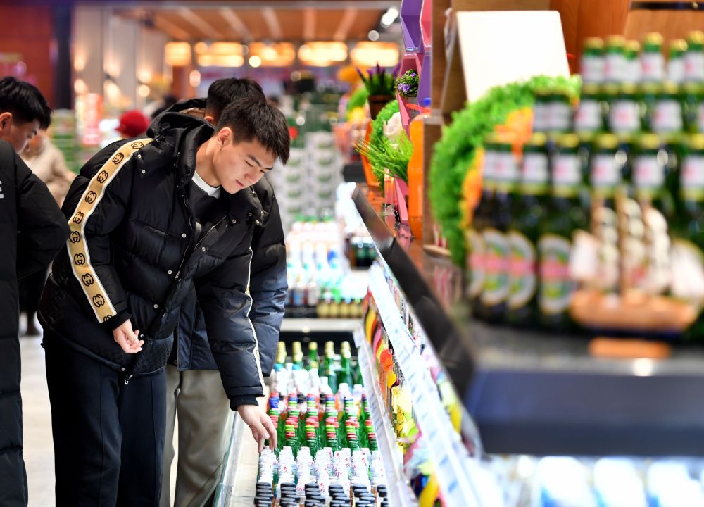 2024年1月17日,顧客在雄安新區(qū)一家超市內(nèi)挑選商品。