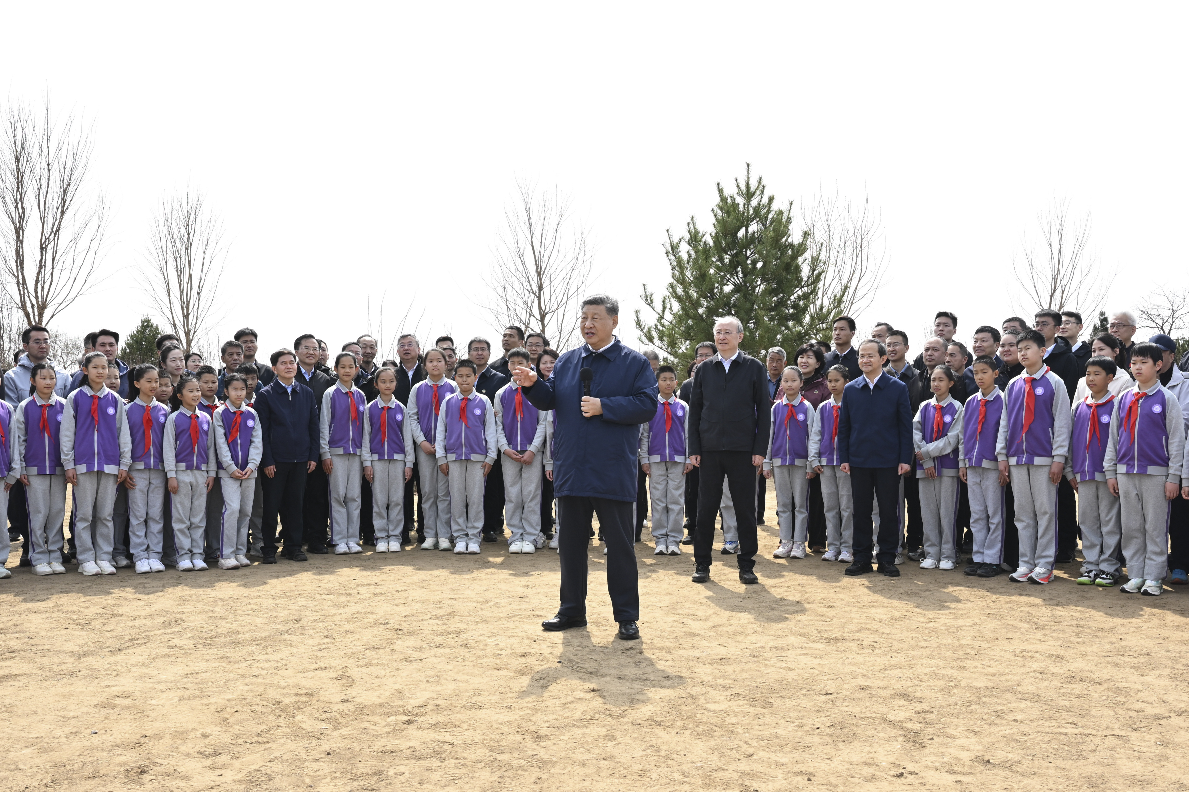3月30日,黨和國家領導人習近平、李強、趙樂際、王滬寧、蔡奇、丁薛祥、李希等來到北京市昌平區(qū)百善鎮(zhèn)參加首都義務植樹活動。這是習近平同在場的干部群眾、少先隊員親切交談。