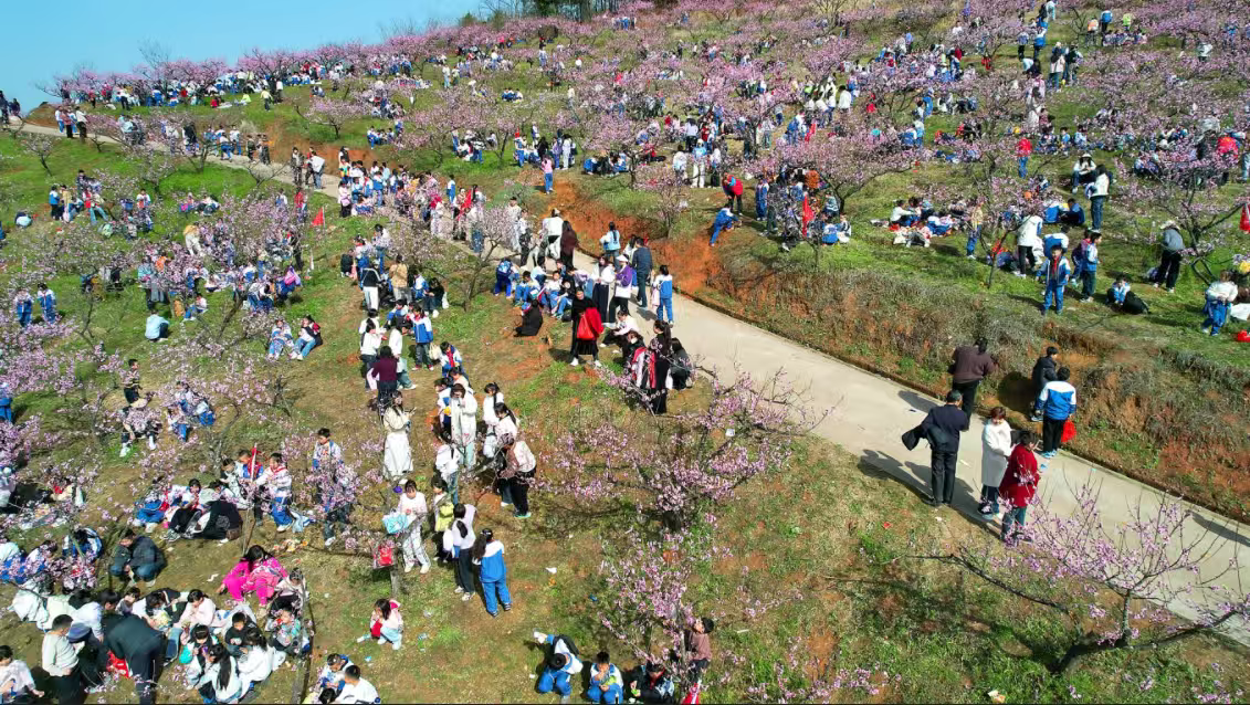 澗池鎮(zhèn)花果村桃花園游客如織
