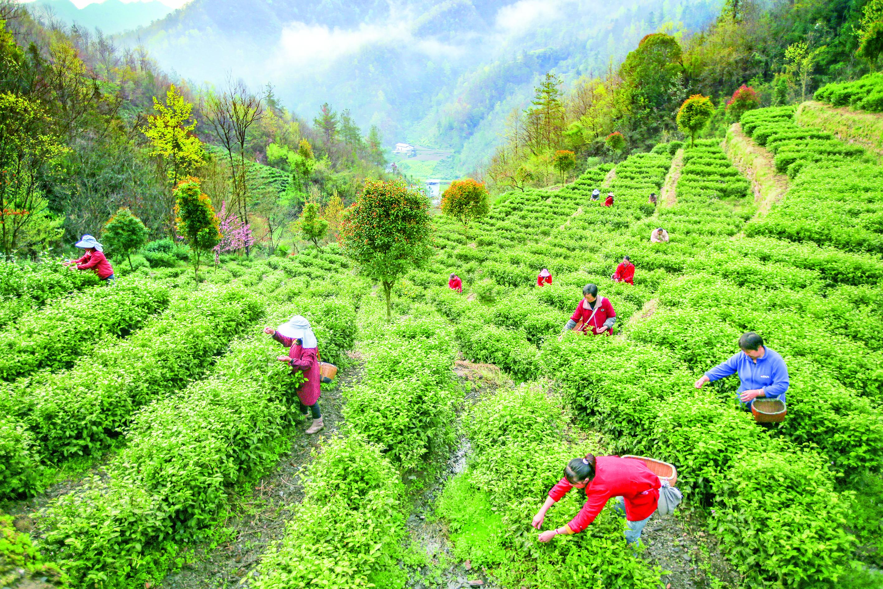 時下正值采茶高峰期,在白河縣宋家鎮(zhèn)雙喜村茶園內(nèi),茶農(nóng)們正搶抓農(nóng)時采摘春茶。據(jù)了解,今年該村春茶產(chǎn)量有所提高、質(zhì)量也更優(yōu)良,預(yù)計整個春茶采摘期持續(xù)1個月,全村今年春茶預(yù)計產(chǎn)量為20余萬斤,產(chǎn)值約6000萬元。  趙久剛 攝
