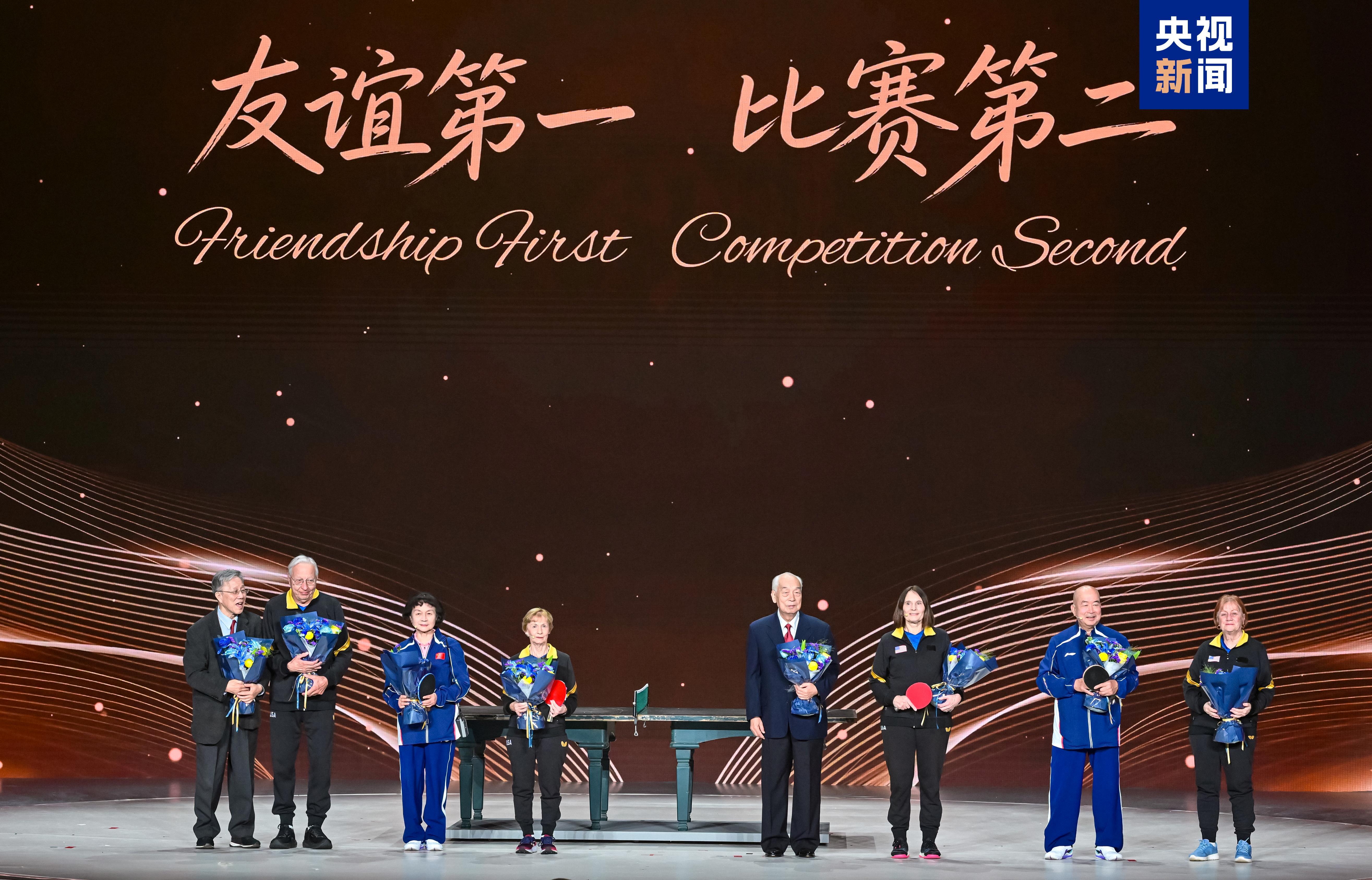 當(dāng)天,由中國(guó)國(guó)家體育總局、中國(guó)中央廣播電視總臺(tái)、中國(guó)人民對(duì)外友好協(xié)會(huì)共同主辦的中美“乒乓外交”55周年紀(jì)念大會(huì)暨中美青少年體育交流系列活動(dòng)啟動(dòng)儀式在北京舉行。中美“乒乓外交”親歷者、中美青少年運(yùn)動(dòng)員及各界代表等出席紀(jì)念大會(huì),共同見證中美青少年體育交流系列活動(dòng)啟動(dòng)。