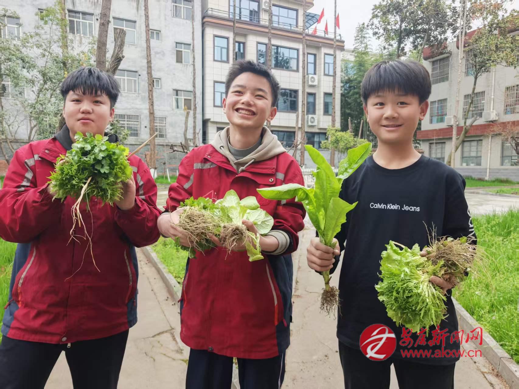 “看著自己翻過(guò)的土地,特別有成就感。”初一學(xué)生陳榮耀一邊擦汗一邊說(shuō),“在春天種上菜,就等著收獲了?!?/p>