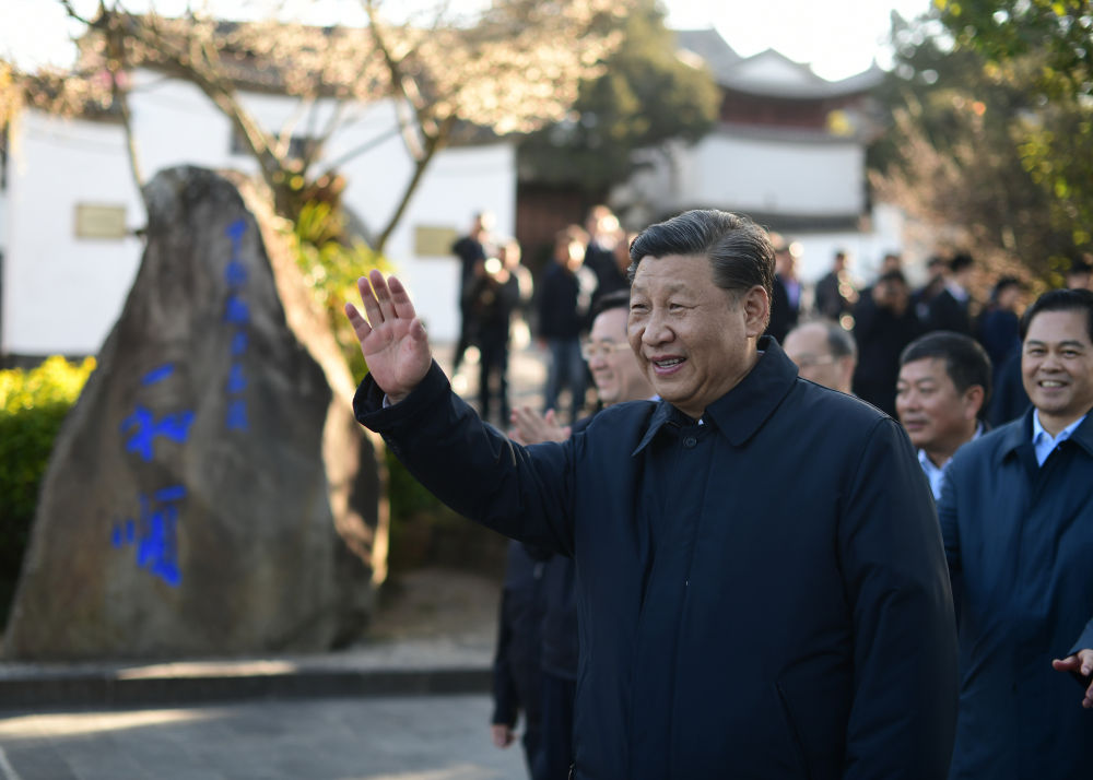 2020年1月19日下午,習(xí)近平在云南騰沖市和順古鎮(zhèn)考察調(diào)研時,向游客和村民揮手致意。